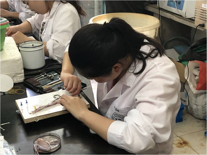 竞赛由水产生态与养殖国家级实验教学示范中心(天津农学院)主任白东清教授主持,教务处处长金天明教授致辞并宣布开始。经过评审老师认真的裁判和严格评选,陈诗琪获“摇蚊幼虫唾腺多线染色体的制备与显微观察”项目一等奖,周鸣轩获“环毛蚓的形态与结构”项目一等奖,王淑奇和丁棠棠获“蟾蜍坐骨神经-腓肠肌活性标本制备”项目一等奖;陈诗琪等20人将代表天津农学院参加天津市第八届大学生生命科学基本实验技能竞赛。